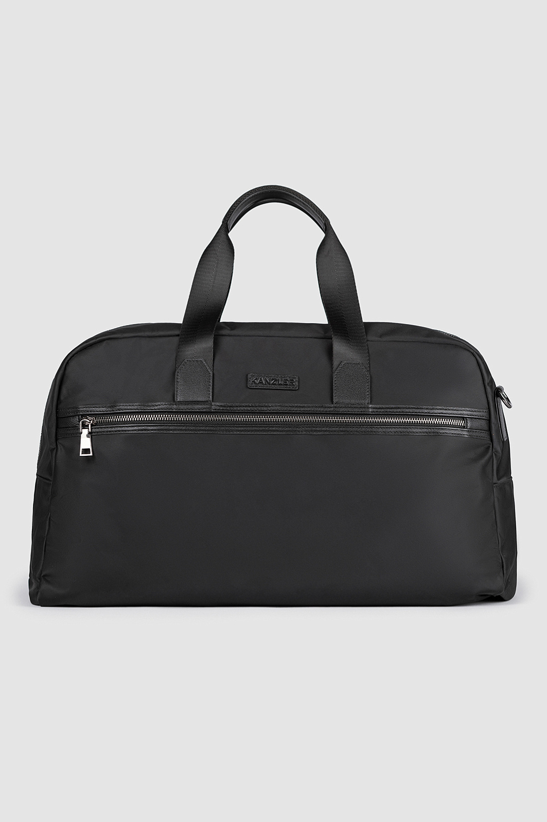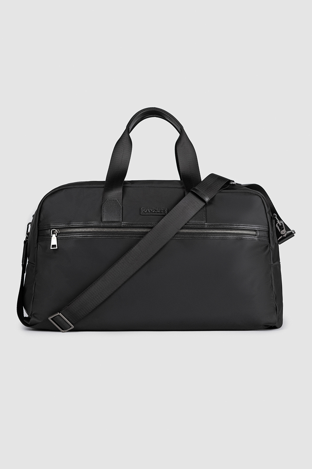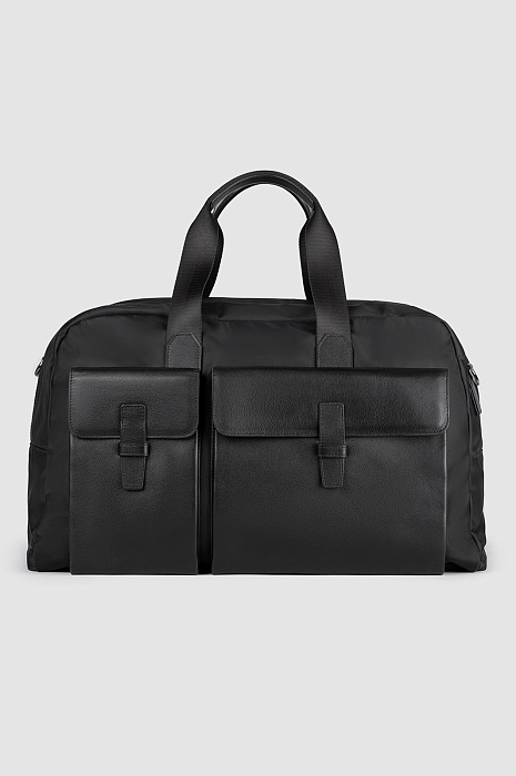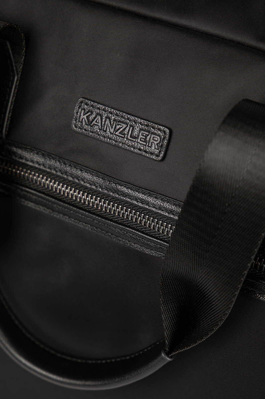 Чёрная сумка KANZLER из натуральной кожи и текстиля представляет собой продуманное сочетание комфорта и современной эстетики. Большие вместительные карманы с клапанами и ремешками на фронтальной части задают строгую графику. Внимание также привлекает контраст фактур: современный текстиль добавляет лёгкость и динамику, а гладкая натуральная кожа подчёркивает статусность. Трапециевидная форма с широким устойчивым основанием делает аксессуар удобным как для повседневных перемещений по городу, так и для командировок и путешествий. Короткие ручки и съемный регулируемый ремень позволяют носить сумку в руке и на плече.