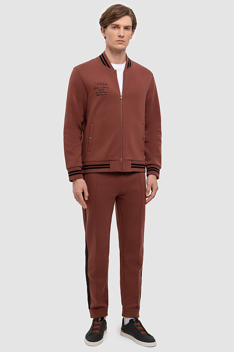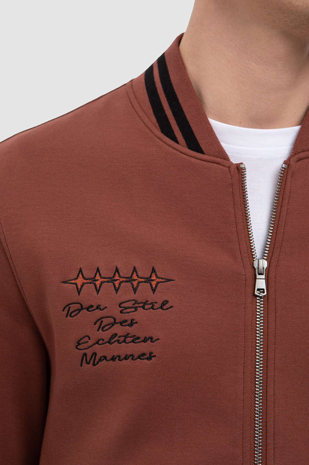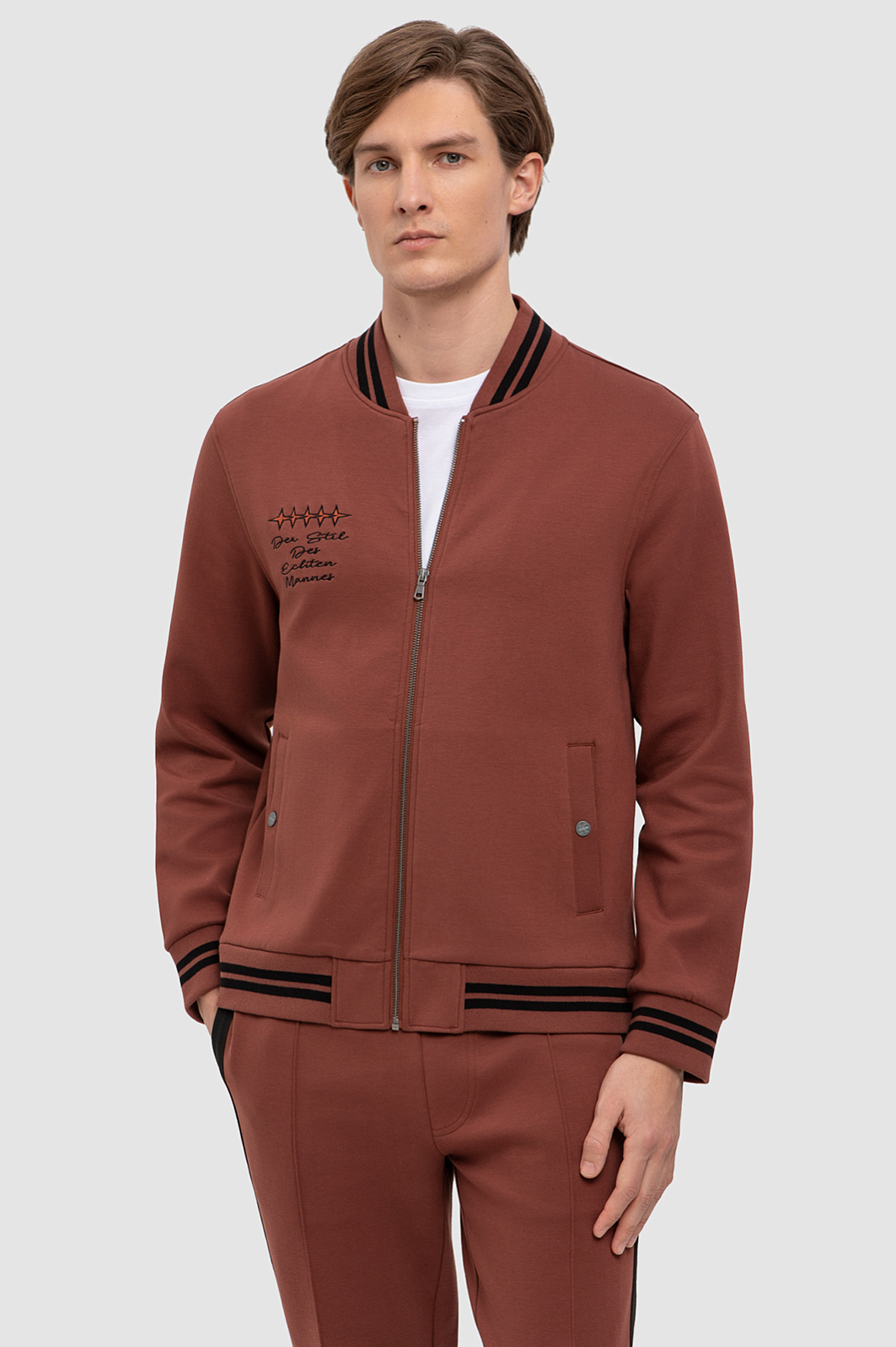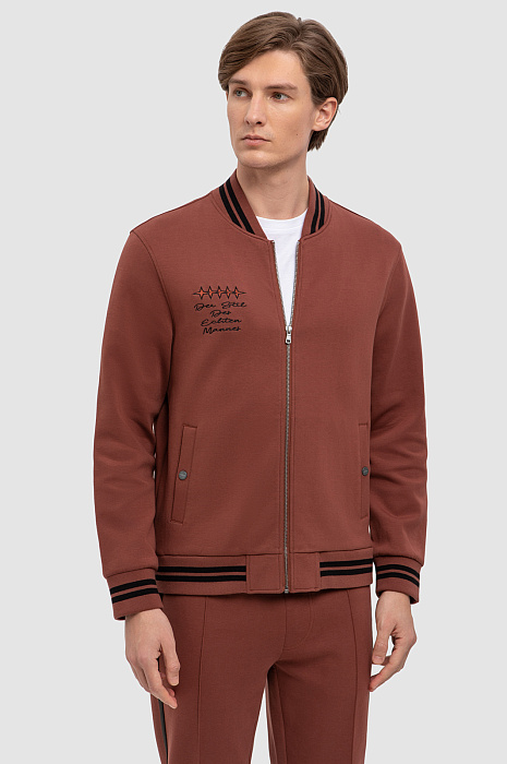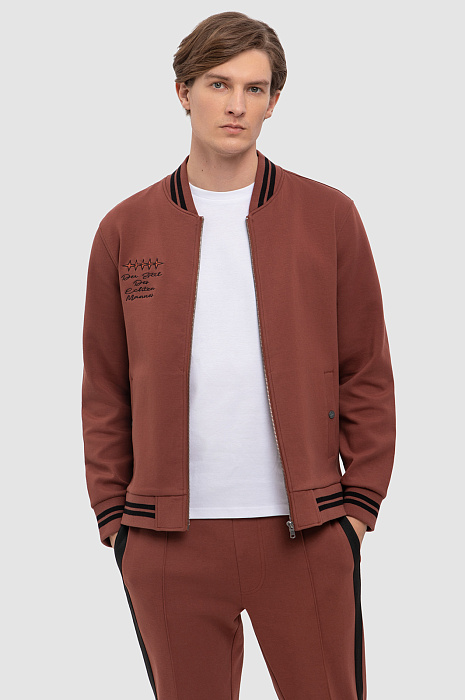 Толстовка KANZLER прямого силуэта на молнии удачно впишется в повседневный мужской гардероб. Одновременно умиротворяющий и насыщенный терракотовый оттенок отлично подойдет для образов в стиле casual в сочетании с классическим темным денимом, а также гармонично дополнит спортивный стиль. Для пошива толстовки с двумя карманами использовали плотный хлопковый трикотаж на основе мягкого, дышащего хлопка, поэтому модель сможет заменить ветровку в прохладный день. Натуральный хлопок хорошо пропускает воздух и при этом сохраняет тепло, а прочные синтетические волокна и эластан обеспечивают износостойкость. Спереди изделие украсили небольшим принтом, брендированными кнопками и каллиграфической надписью, словно написанной от руки, а сзади - прорезиненным логотипом бренда. В качестве декора использовали контрастные полоски на воротнике и манжетах. Наши стилисты советуют дополнить образ базовой футболкой и джоггерами в таком же оттенке.