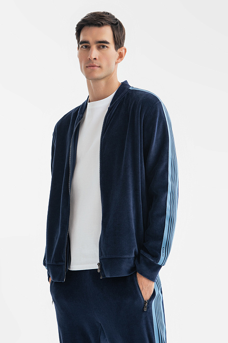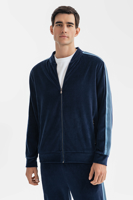 Толстовка из хлопка с лампасами, цвет синий, цена 6 990 руб., код 268677 - купить в Краснодаре в интернет-магазине KANZLER