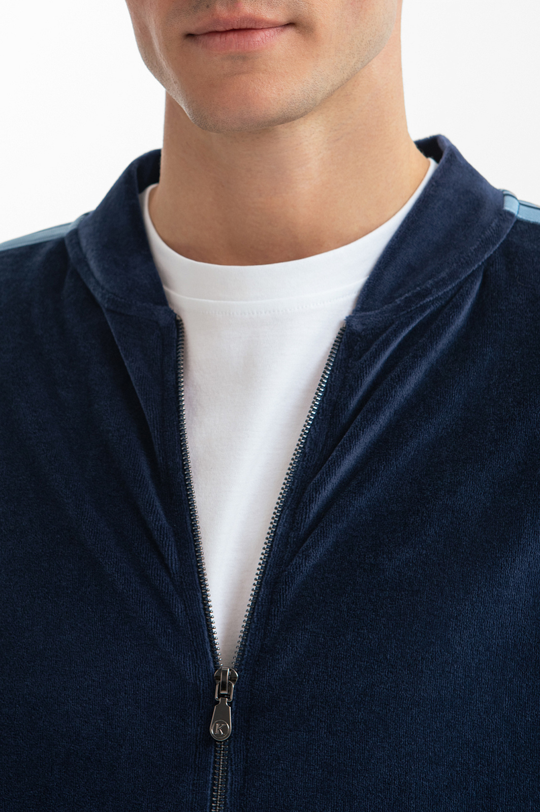 Толстовка KANZLER из хлопкового велюра на молнии предназначена для активного отдыха. Ее можно носить с джинсами и велюровыми брюками KANZLER, как спортивный костюм. Ткань мягко облегает тело, создавая красивую драпировку. Широкие полосатые лампасы и молнии добавляют спортивного шика и динамичности. Боковые карманы согреют и защитят руки от ветра. Эффектный, приятный на ощупь материал создан из натурального хлопка, который поддерживает естественное тепло тела и отводит лишнюю влагу. Суперпрочные волокна полиэстера добавлены в ткань для практичности и износоустойчивости. Параметры модели: рост 192, 101-76-97 Размер на модели: M