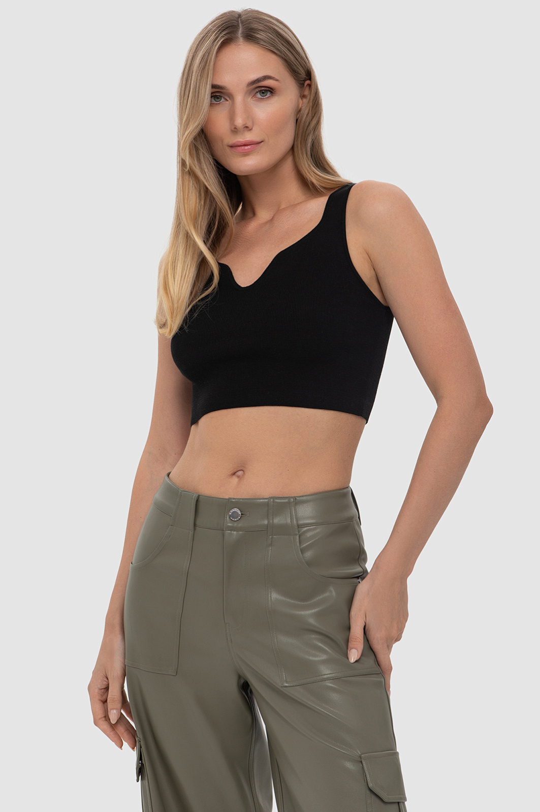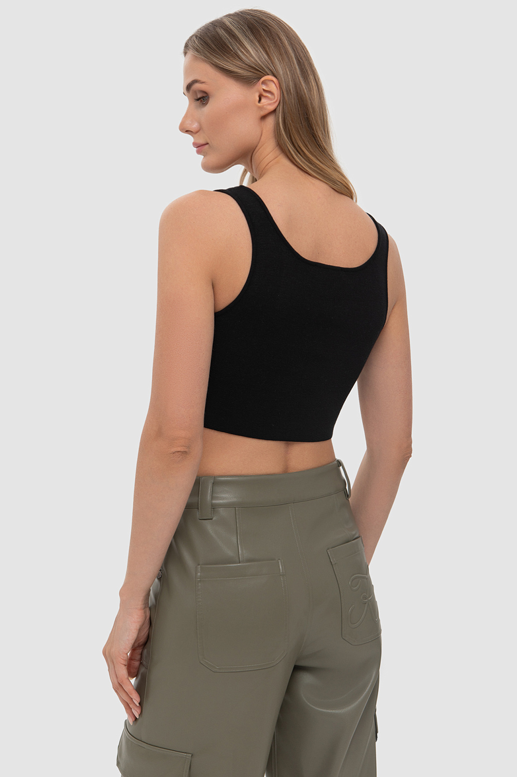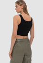 Черный короткий топ из 100% хлопка — стильная и удобная база для создания разнообразных сочетаний. Лёгкий и дышащий материал делает его идеальным выбором на каждый день. Хлопок премиум-качества гарантирует комфорт, долговечность и устойчивость к износу, а его нежная гладкая фактура дарит коже приятные ощущения. Универсальный черный цвет позволяет легко комбинировать топ с различными вещами — от джинсов до юбок, что делает его отличным решением как для повседневной носки, так и для более особых случаев. Благодаря продуманному крою модель прекрасно сидит на фигуре, подчеркивая ее достоинства и создавая привлекательный силуэт.