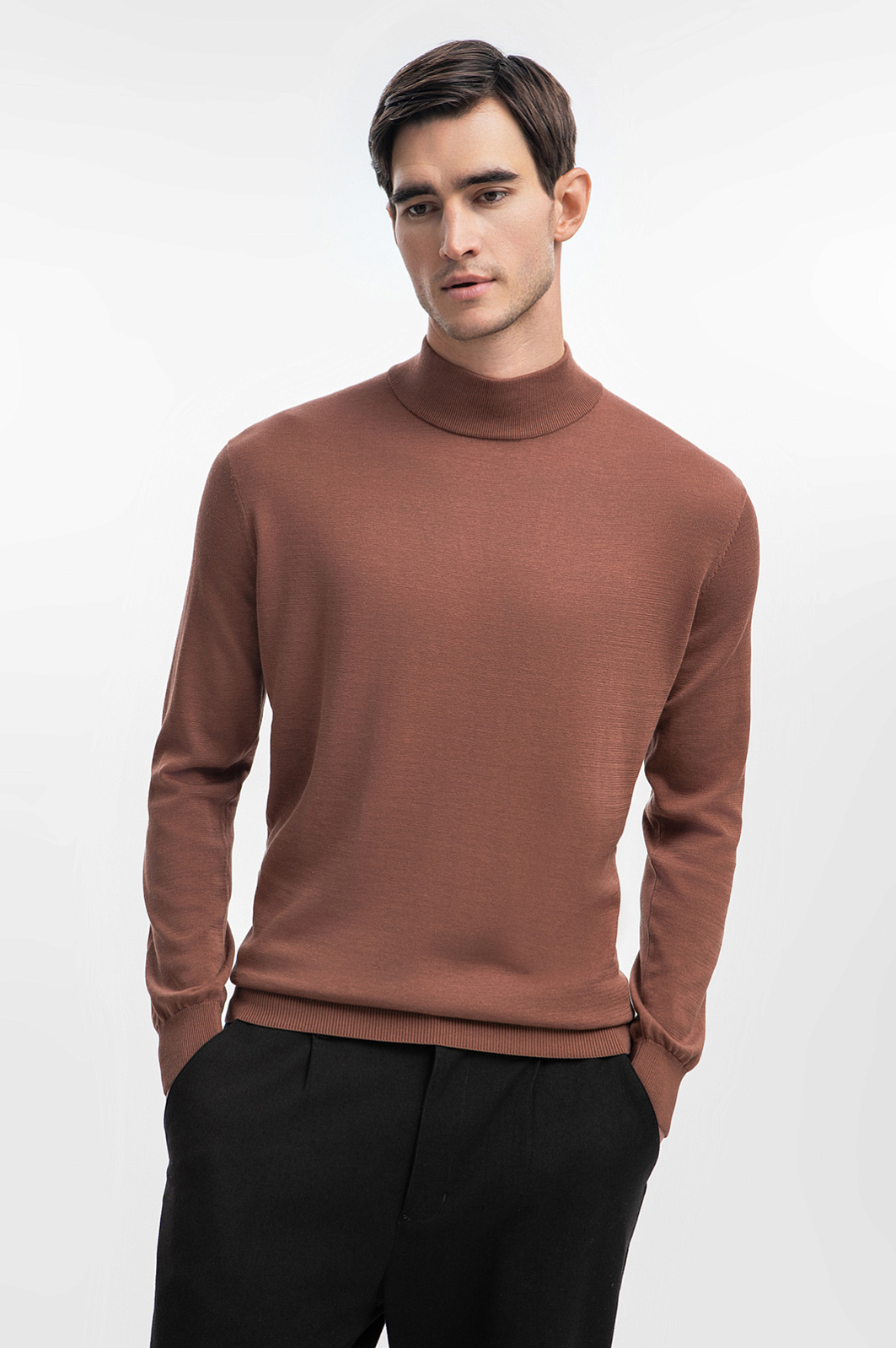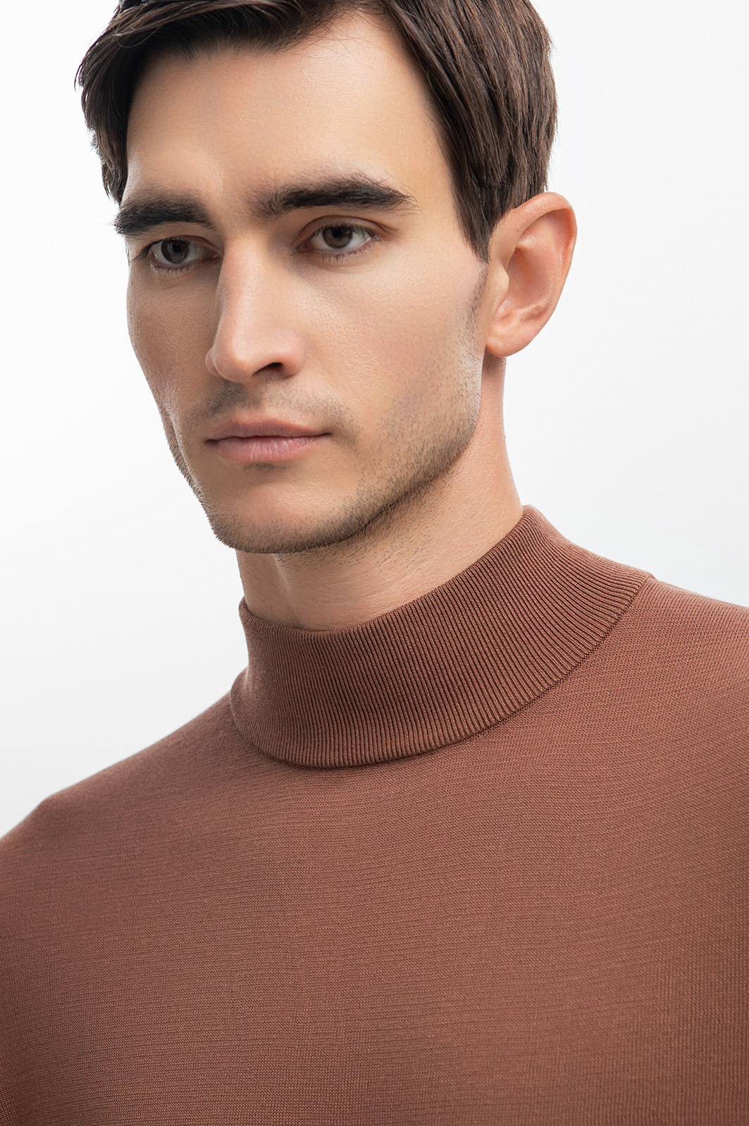 Водолазка из хлопка, шелка и льна, цвет коричневый, цена 7 990 руб., код 268496 - купить в Краснодаре в интернет-магазине KANZLER